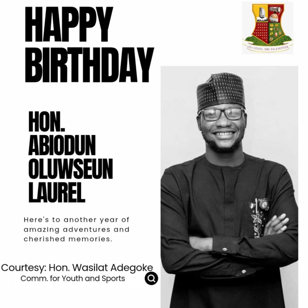 Commissioner for Youth and Sports in Oyo State, Hon. Wasilat Adegoke, has extended warm felicitations to Hon. Abiodun Oluwaseun Laurel, Senior Special Assistant to the Governor on Project Delivery.
