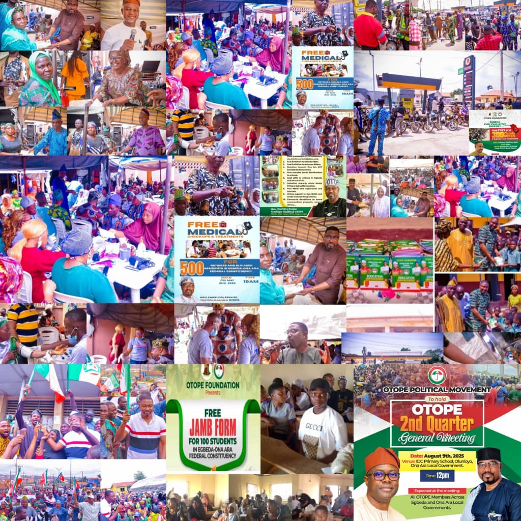 Hon. Dr. Temitope Oladimeji, popularly known as OTOPE, has reaffirmed his unwavering commitment to grassroots empowerment, declaring that his appointment as Director-General of the Oyo State Liaison Offices in Abuja and Lagos remains a platform to give back to his people in Egbeda/Ona-Ara and Oyo State at large.