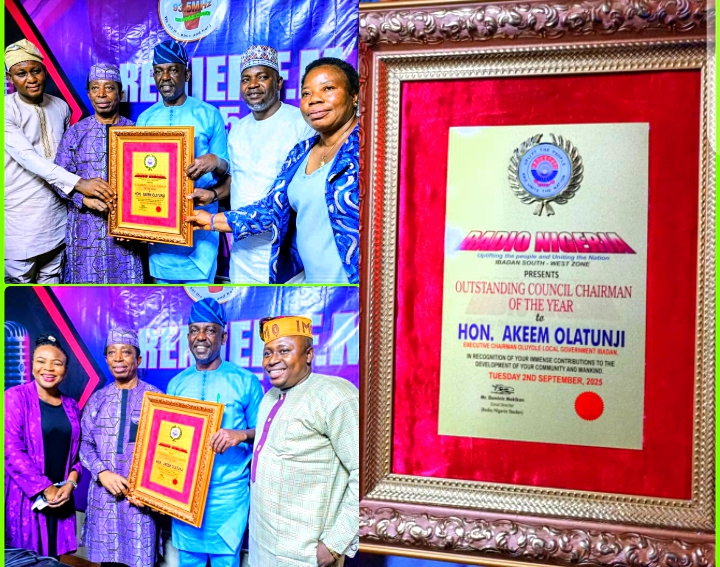 The Executive Chairman of Oluyole Local Government, Asiwaju Akeem Olatunji, has been honored with the prestigious Outstanding Council Chairman of the Year Award by the South West Zonal Office of Radio Nigeria.