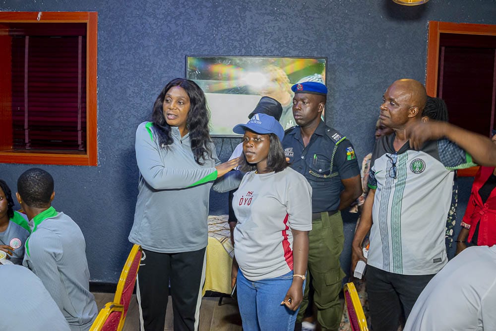 The Oyo State Commissioner for Youth and Sports, Honourable Wasilat Adegoke, welcome the Nigerian Under-20 women’s national football team, Falconets to the capital city, Ibadan, , as they prepare to take on Rwanda in a FIFA World Cup qualifier match at the Lekan Salami Stadium in Ibadan on September 27.