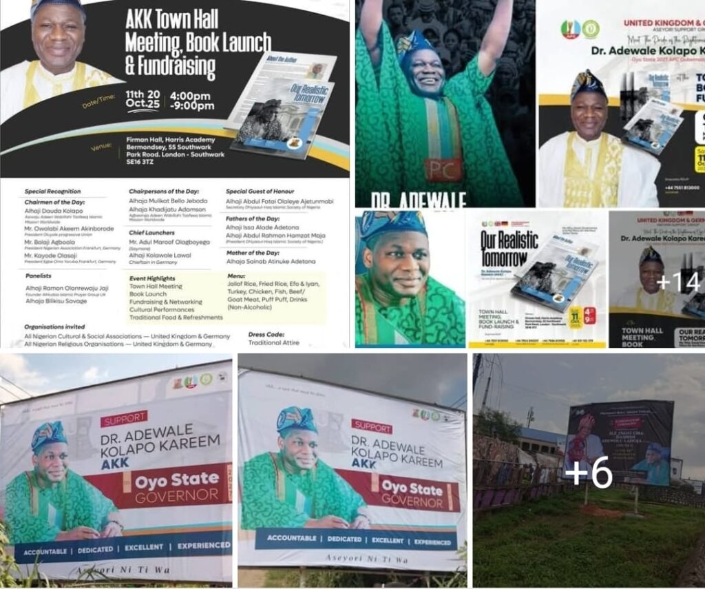 Nigerians in the United Kingdom and Germany—particularly those of Oyo State origin—are set to converge in London for a historic town hall meeting, fundraising event, and book launch in honour of Dr. Adewale Kolapo Kareem (widely known as AKK), a 2027 gubernatorial aspirant under the platform of the All Progressives Congress (APC).