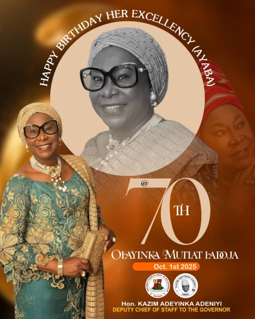 On this remarkable occasion of your 70th birthday, we join family, friends, and well-wishers across the globe in celebrating a rare gem, a virtuous woman, and an outstanding matriarch, Oloye (Alhaja) Mutiat Olayinka Ladoja.