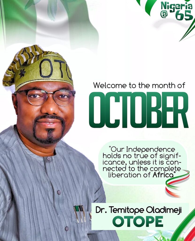 The Oyo State Director-General, Liaison Office for Abuja and Lagos and Founder of Otope foundation, Dr. Temitope Oladimeji (OTOPE), Felicitates Nigerians, Urges Unity and Fairness as Nigeria Marks 65th Independence Day