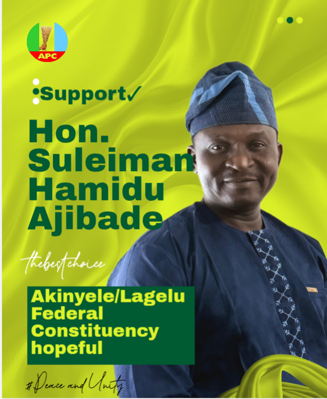 As we draw closer to the 2027 general elections, the Akinyele/Lagelu Federal Constituency faces a defining moment—one that requires courageous, people-driven leadership founded on vision, compassion, and decisive action. It is in response to this call that I, Hon. Suleiman Hamidu Ajibade, step forward under the platform of the Peoples Democratic Party (PDP) with a deep sense of duty to serve, transform, and uplift every community across our constituency.