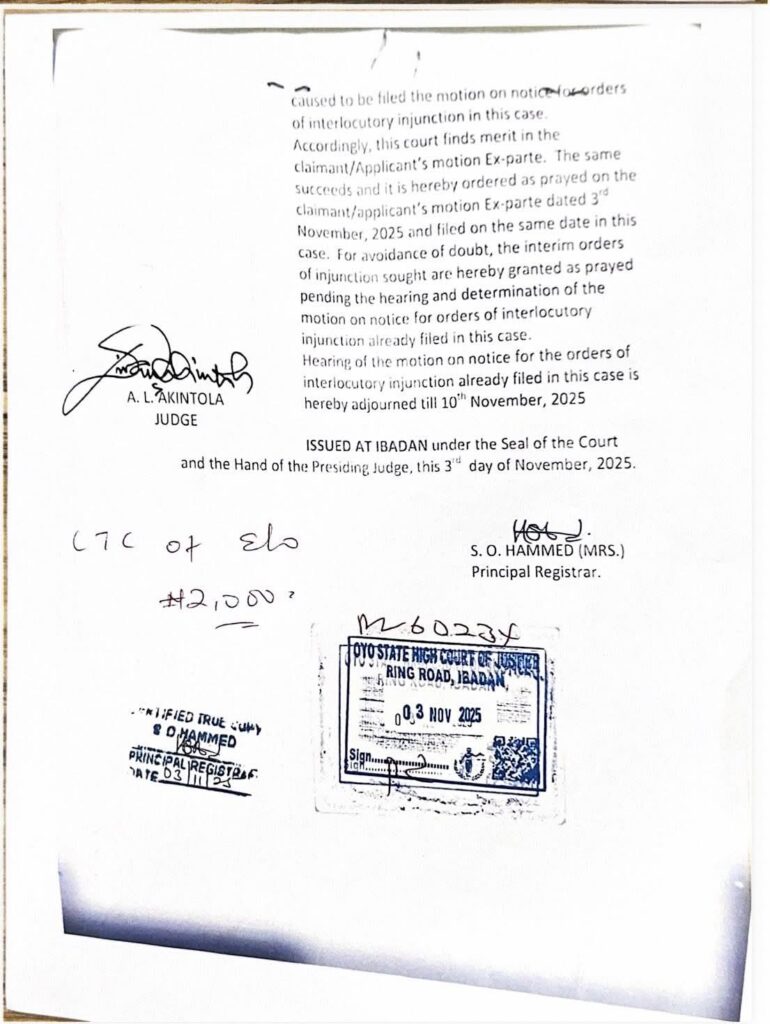 A.L. Akintola, the presiding judge, issued the order on Monday following an ex parte application filed by Folahan Malomo Adelabi.