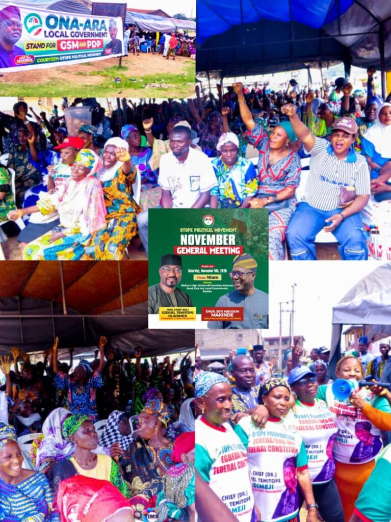 Ona-Ara Local Government was agog today, Saturday, November 8, 2025, as the OTOPE Political Movement, under the leadership of Hon. Dr. Temitope Oladimeji (OTOPE), held its November General Meeting at Elekuro High School, Owode, off Amuloko–Akanran Road, Ibadan.