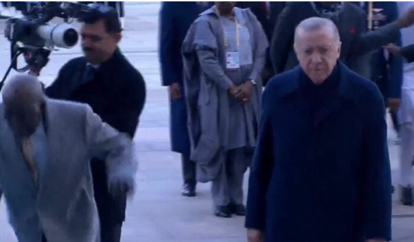 The incident occurred as he walked alongside Turkish President Recep Erdogan.